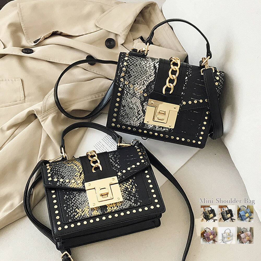 ショルダーバッグ レディース 春夏秋冬 スクエア ミニ 2つのスペース 金の金具や装飾 合皮 ラメ入・・・