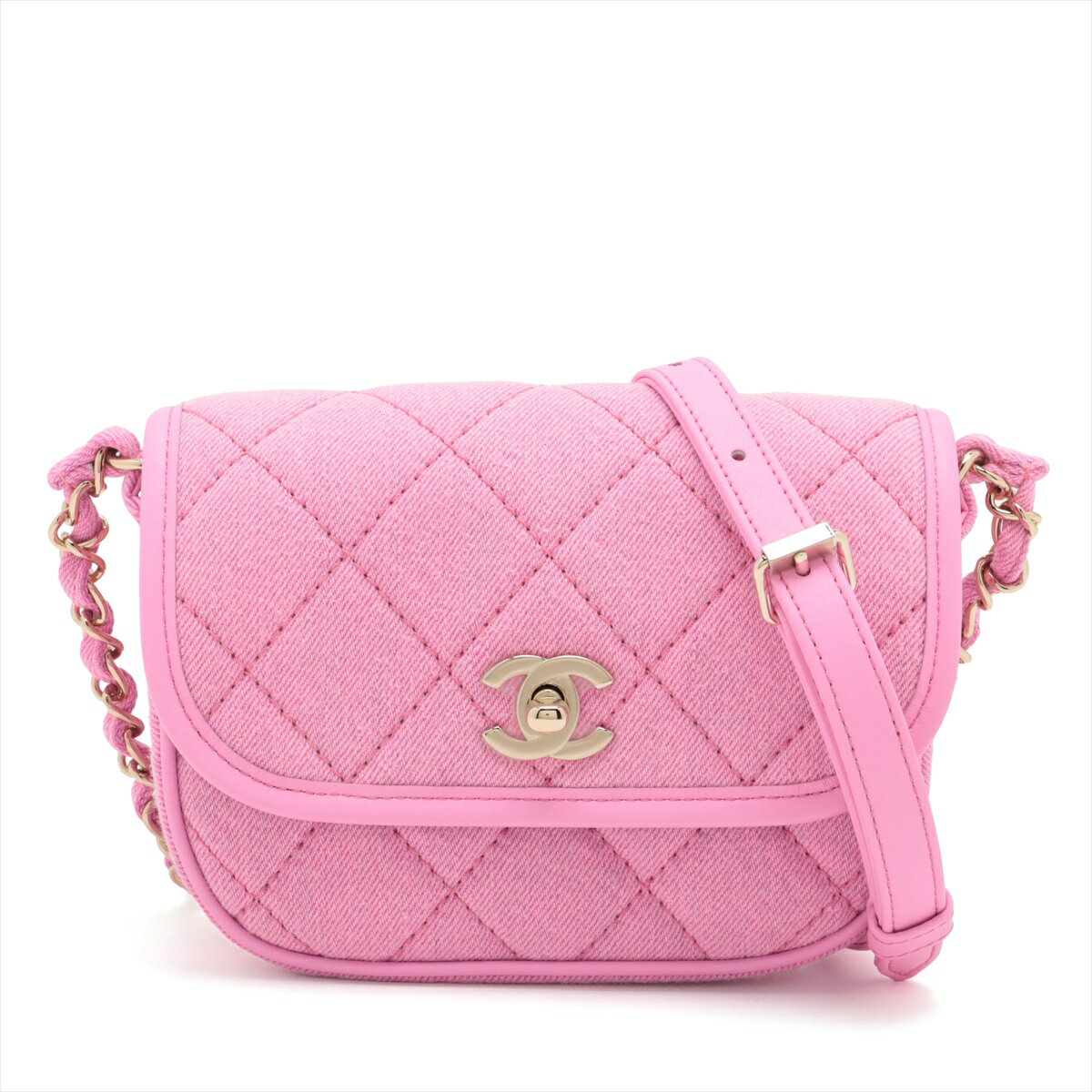 【中古】シャネル マトラッセ デニム×レザー チェーンショルダーバッグ メッセンジャー ピンク ゴー・・・