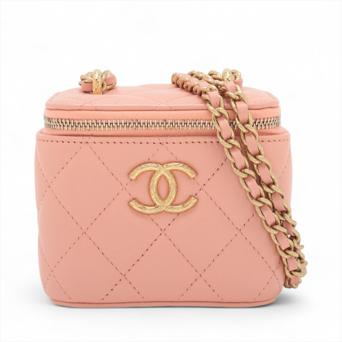【中古】シャネル マトラッセ ラムスキン チェーンショルダーバッグ バニティ ピンク ゴールド金具 ・・・