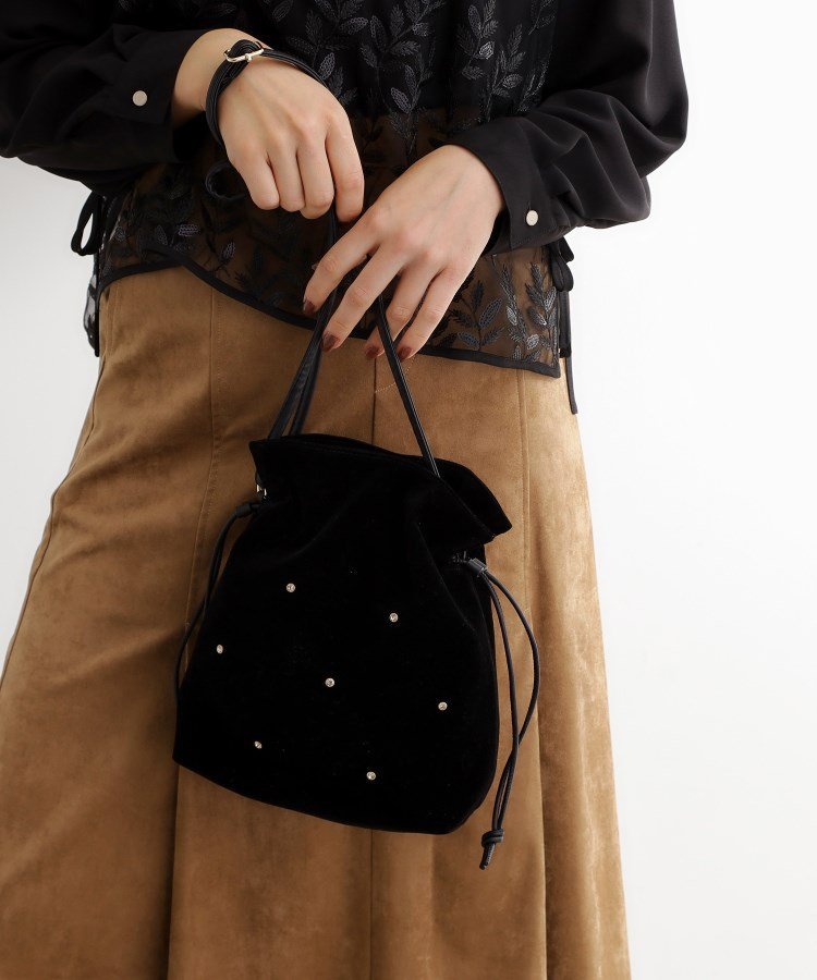 grove スタッズスエード調巾着ショルダー グローブ バッグ ショルダーバッグ ワインレッド グレ・・・