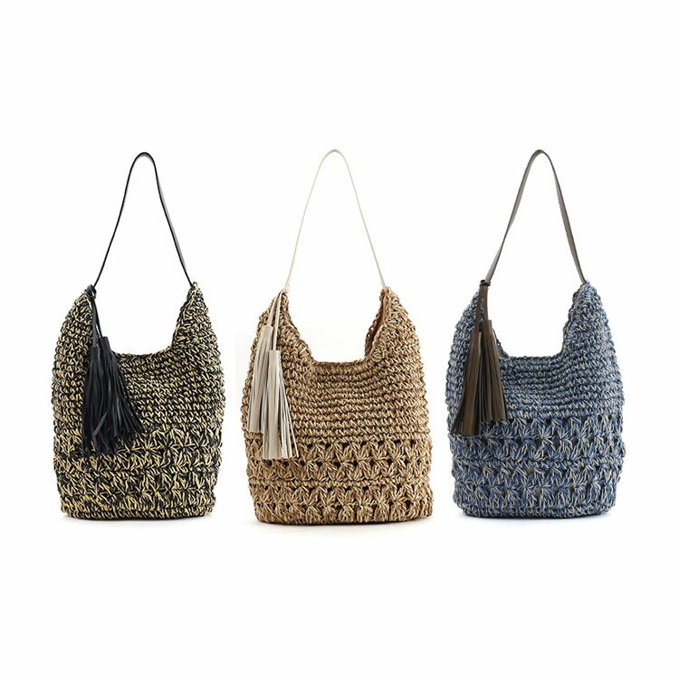 【COOCO クーコ】タッセル付 MIXペーパー ワンショルダーバッグ