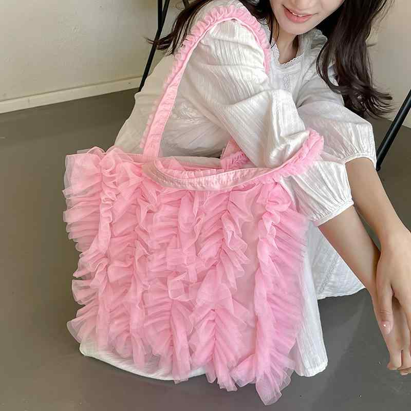 バッグ レディース ショルダーバッグ フリル レース 切り替え プリーツ タッセル 縦型 スクエア ・・・