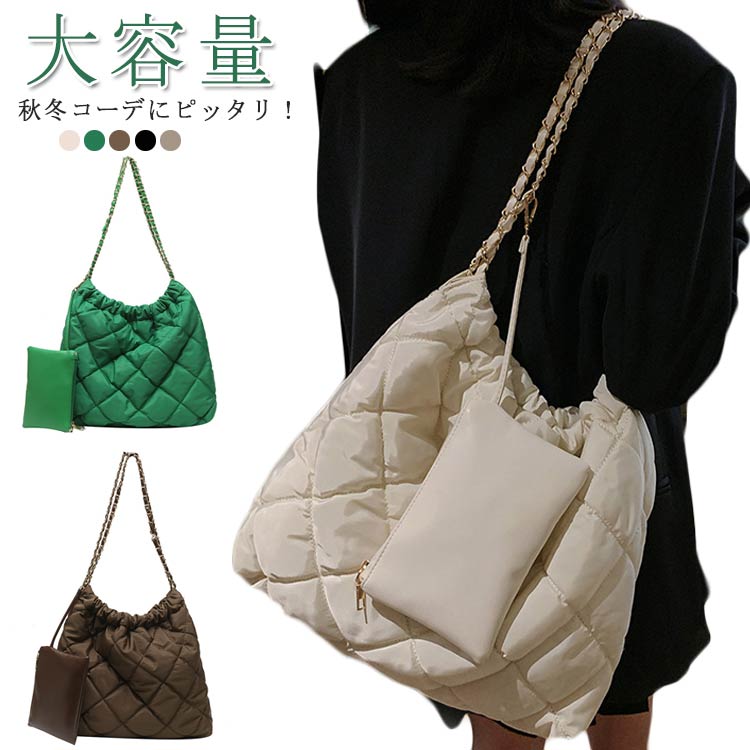 軽量 レディース チェーンバッグ 肩掛け 鞄 秋冬 キルティング トートバッグ 収納ポーチ付き ショ・・・