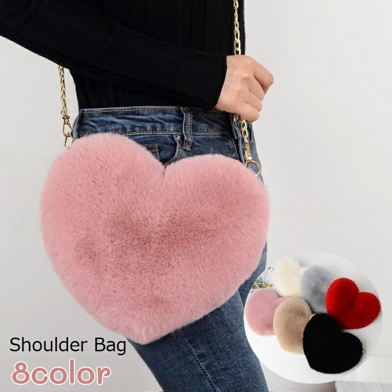 送料無料 ショルダーバッグ レディース ふわふわフェイクファー チェーン ハート 無地 可愛い ミニ・・・