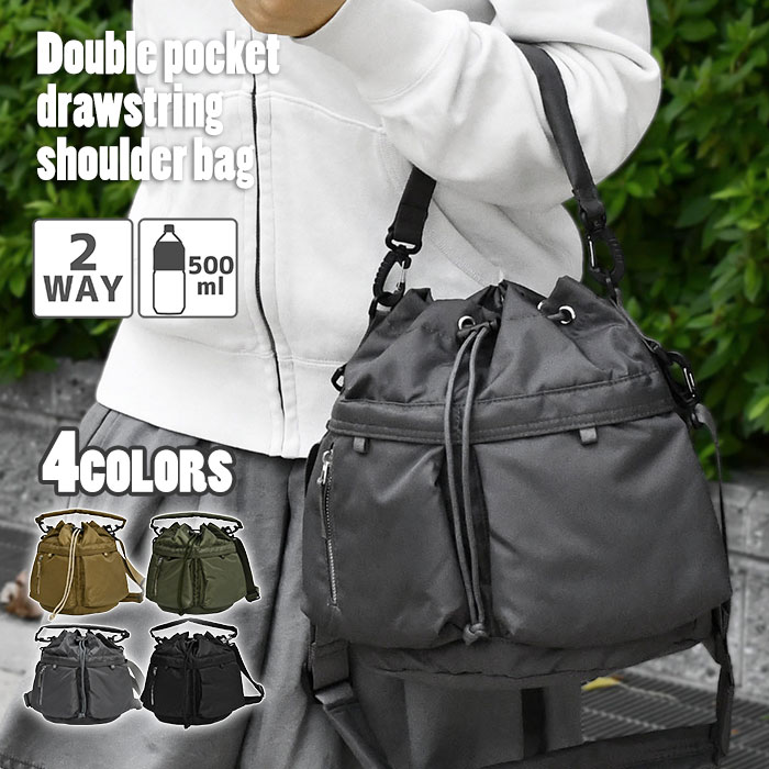 ダブルポケット ドロスト ショルダーバッグ レディース 2way ショルダー 巾着 巾着バッグ 巾着・・・