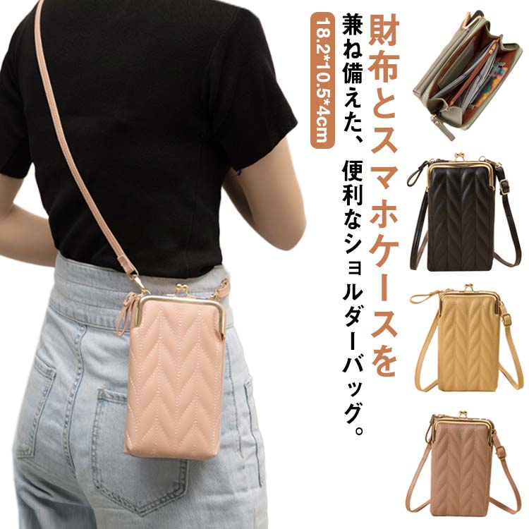 PU革多機能 送料無料 レディース 通帳 スマホショルダー 長財布 大容量 財布 ガバッと開く小銭入・・・