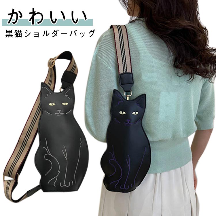 ネコ バッグ 斜めがけバッグ 黒猫 ボディバッグ 猫バッグ レディース 猫 猫柄 ボディーバッグ 猫・・・