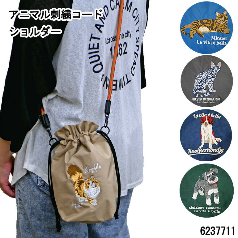 アニマル ショルダーバッグ レディース アニマル刺繍コード バッグ 動物 イヌ 犬 猫 ネコ キャッ・・・