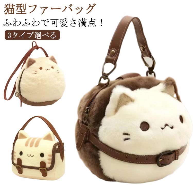 猫 ショルダーバッグ にゃんこバッグ ファー 猫バッグ 2way ふわふわ 肩掛け トートバッグ フ・・・