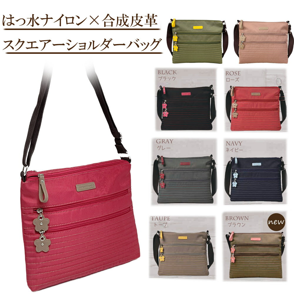 約290gの軽量感!はっ水ナイロンのスクエア型ショルダーバッグ バック 撥水 通勤 散歩バッグ 普段・・・