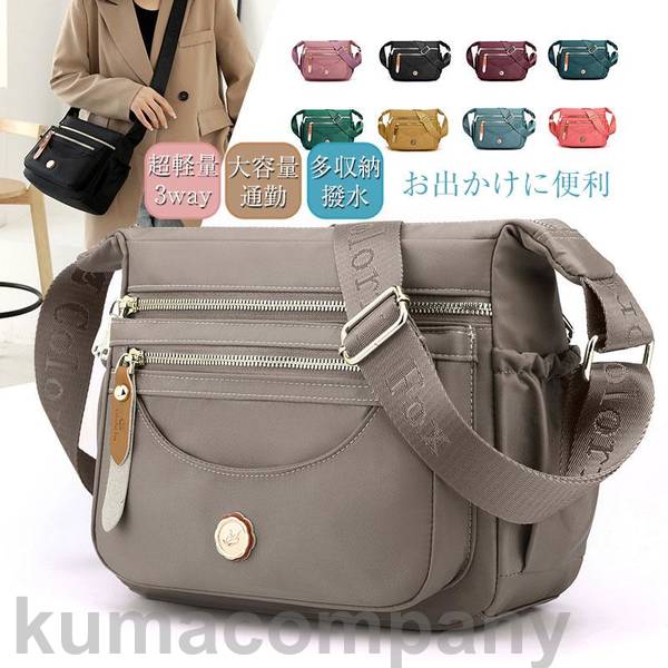 ショルダーバッグ レディース 斜めがけ 大人 軽量 撥水 ナイロン 肩掛け 通勤 ファスナー シンプ・・・