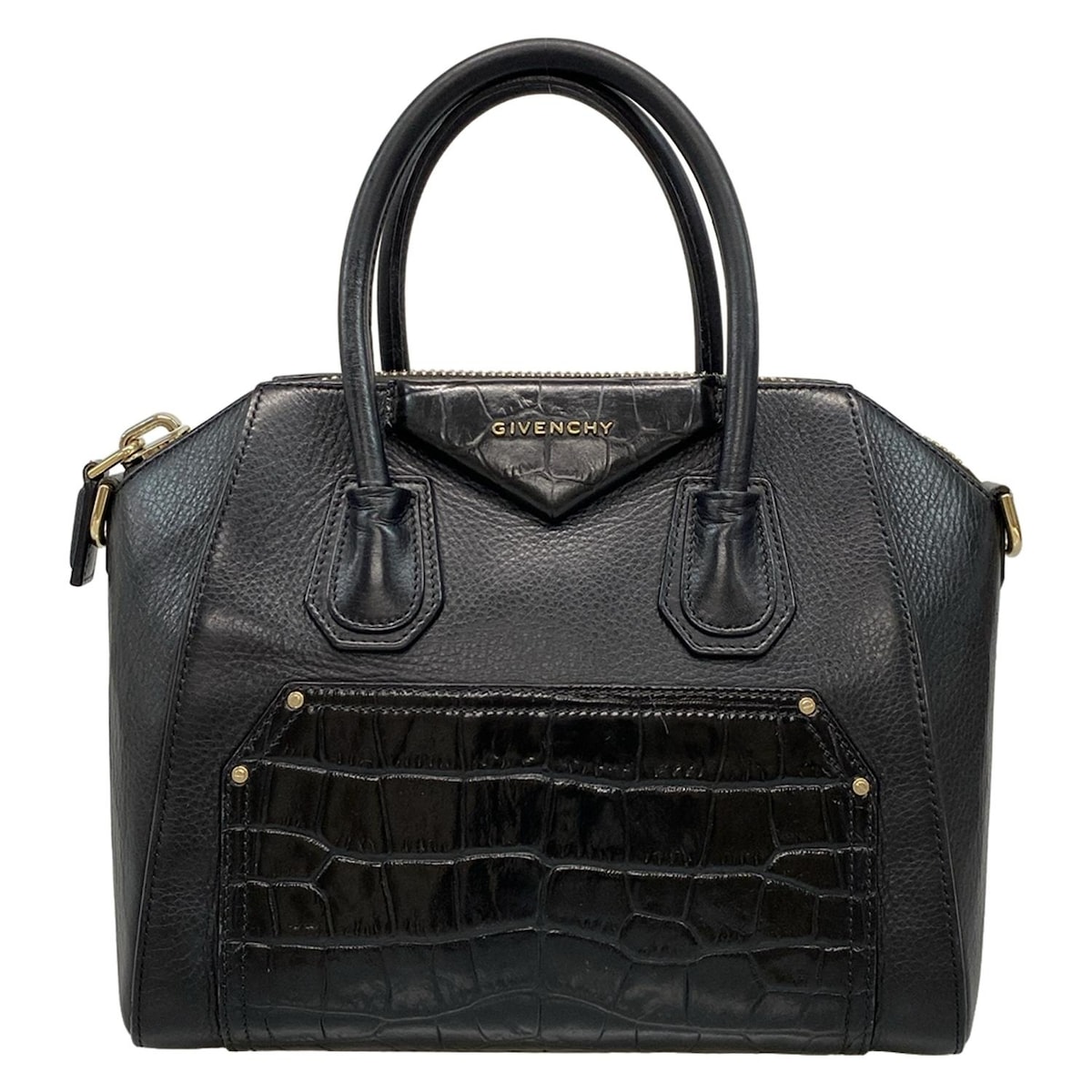 【新着】【中古】GIVENCHY(ジバンシー) アンティゴナスモール ハンドバッグ 型押し加工 黒 ・・・