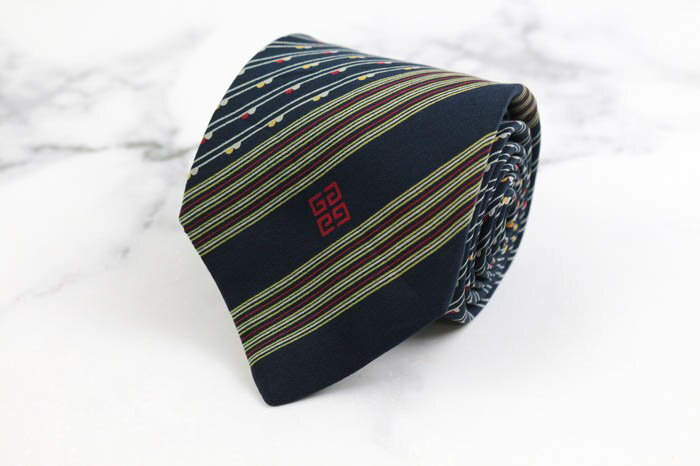 GIVENCHY ジバンシィ ブランドネクタイ 総柄 ストライプ シルク フランス製 メンズ ネイビ・・・