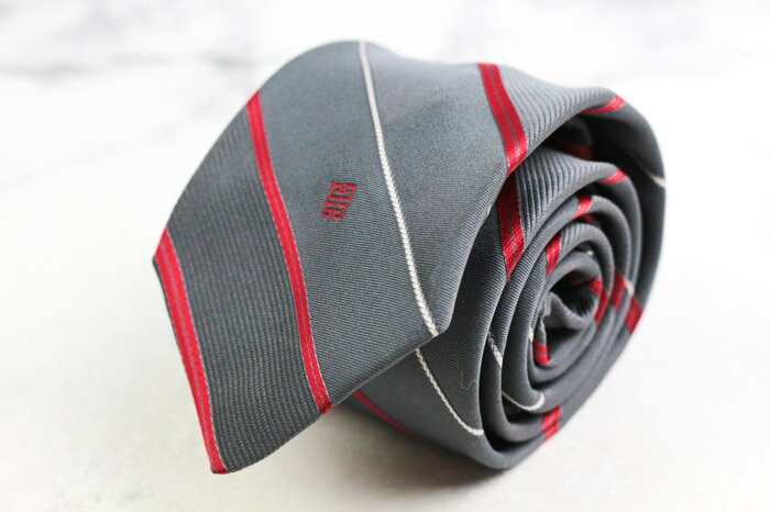 ジバンシィ ブランド ネクタイ ロゴ ストライプ柄 シルク PO メンズ グレー GIVENCHY ・・・