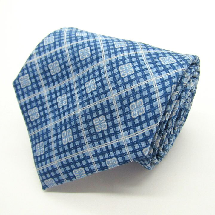 ジバンシィ ブランド ネクタイ ロゴ チェック柄 格子柄 シルク イタリア製 PO メンズ ブルー ・・・