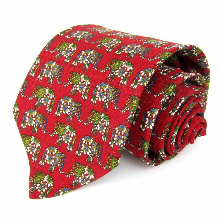 ジバンシィ ネクタイ ブランド 総柄 動物柄 ゾウ シルク メンズ レッド GIVENCHY 【中古・・・