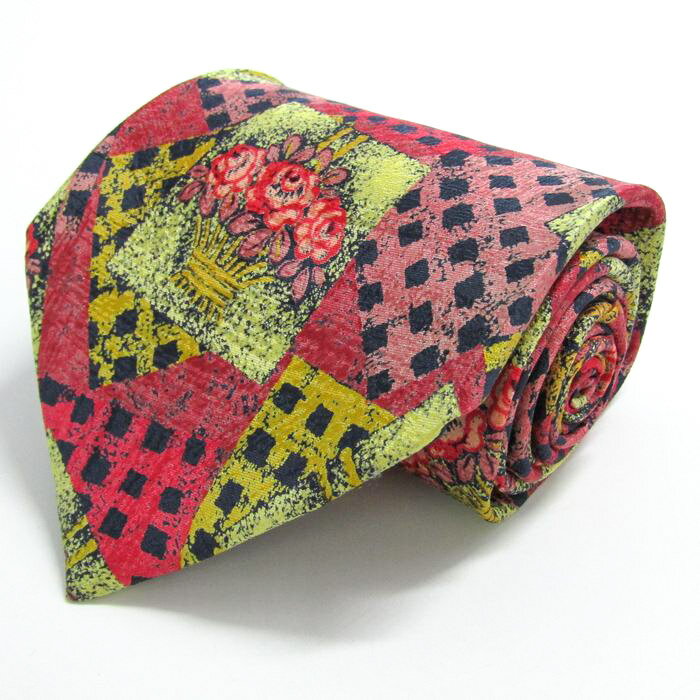 ジバンシィ ブランド ネクタイ シルク チェック柄 花柄 ワイドタイ PO メンズ レッド GIVE・・・