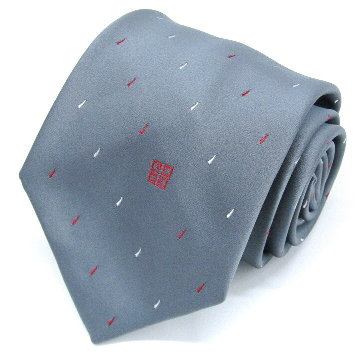 ジバンシィ ブランド ネクタイ ロゴ 小紋柄 パネル柄 シルク PO メンズ グレー GIVENCH・・・