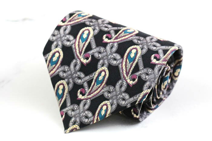 ジバンシィ ブランド ネクタイ 総柄 ペイズリー 格子柄 シルク アメリカ製 PO メンズ ブラック・・・