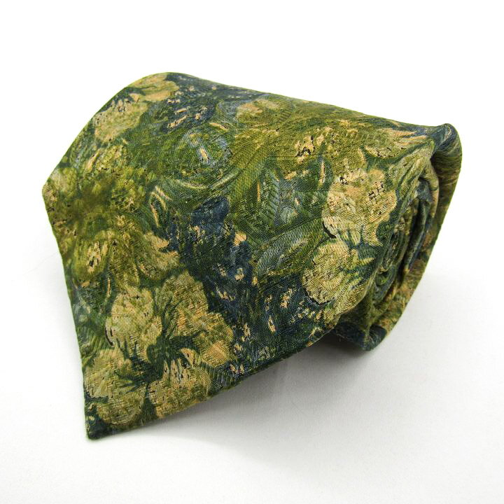 ジバンシィ ブランドネクタイ 総柄 花柄 リーフ柄 シルク イタリア製 PO メンズ カーキ GIV・・・