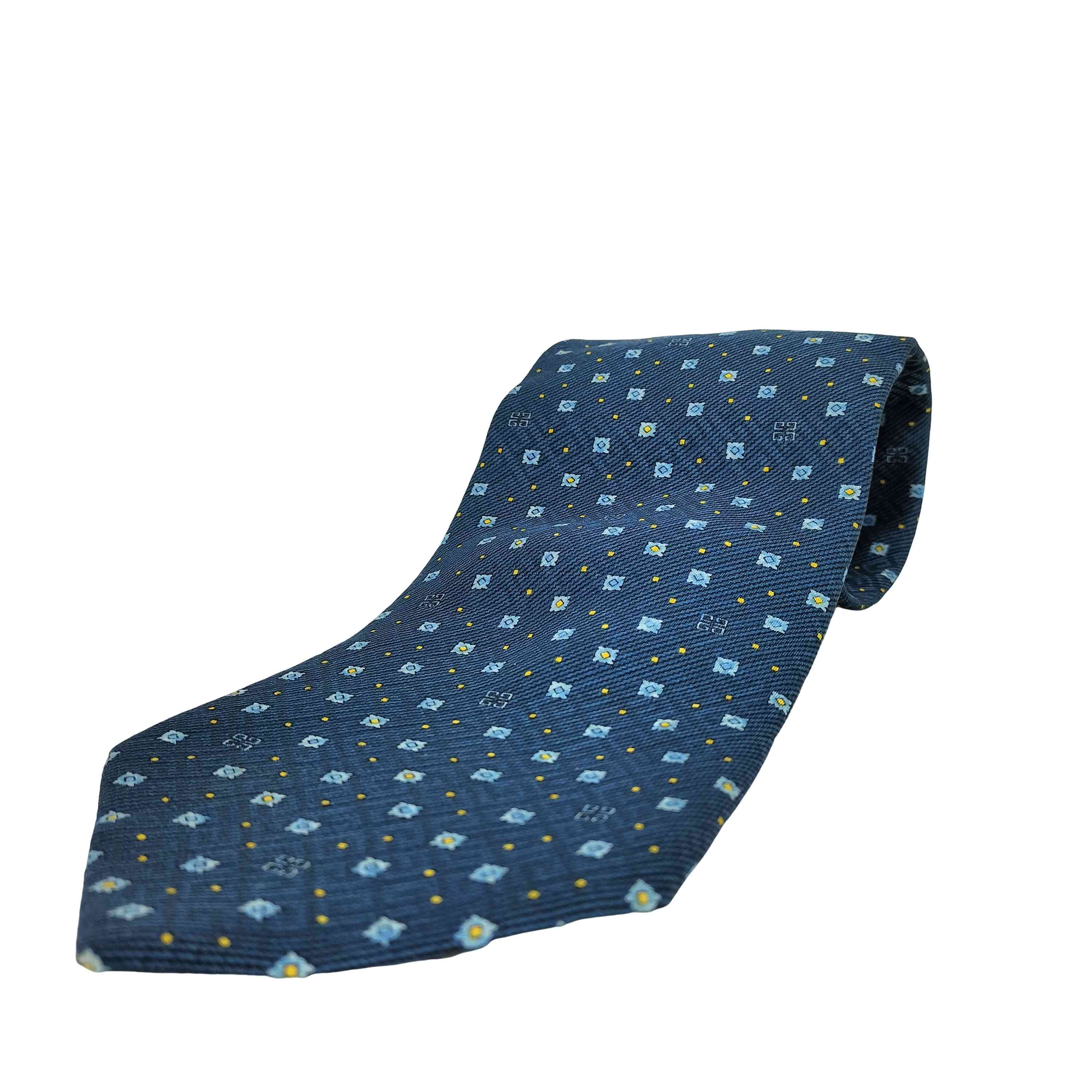 【中古】ジバンシィ GIVENCHY ネクタイ ワイドタイ 総柄 絹 シルク 光沢 黄 イエロー 青・・・