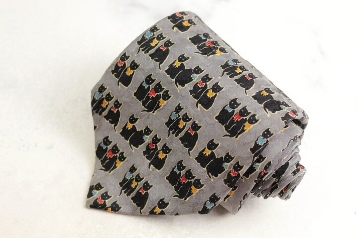 ジバンシィ ブランドネクタイ 総柄 動物柄 ネコ シルク PO メンズ グレー GIVENCHY 【・・・