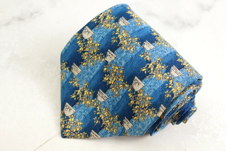 ジバンシィ ブランドネクタイ リーフ柄 格子柄 シルク PO メンズ ブルー GIVENCHY 【中・・・