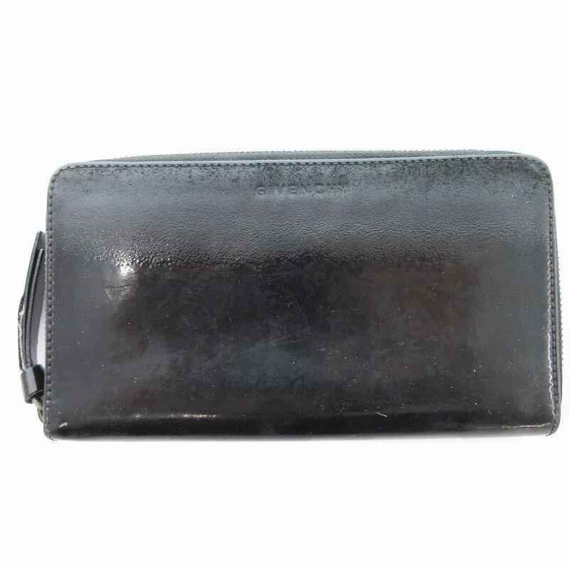 【中古】ジバンシィ GIVENCHY 長財布 ラウンドファスナー エナメルレザー 黒 ブラック /J・・・