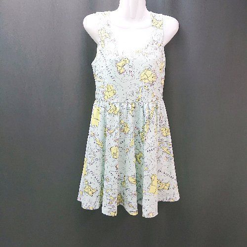 ◇ JILL STUART 地図柄 バックジップ ウエスト切替 ノースリーブ 膝丈 ワンピース サイ・・・