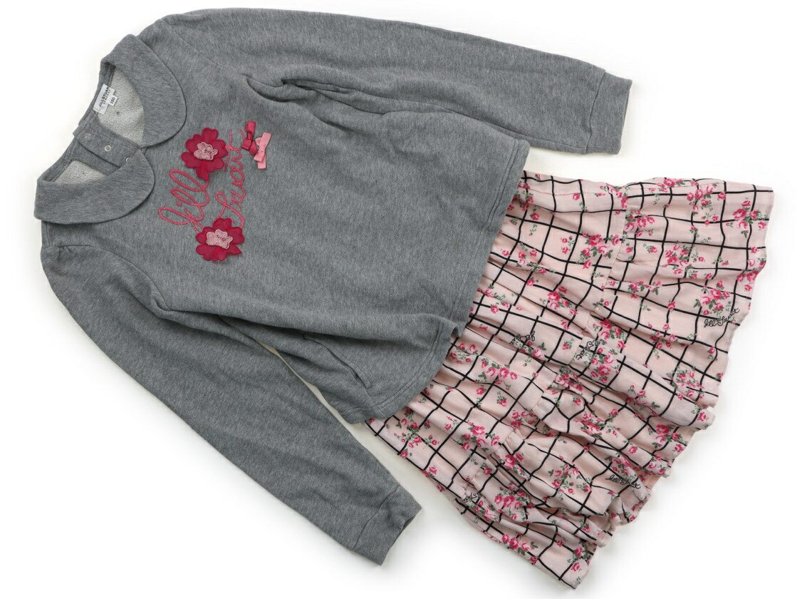 ジルスチュアート JILL STUART ワンピース 150 女の子 グレー/パステルピンク×ブラッ・・・