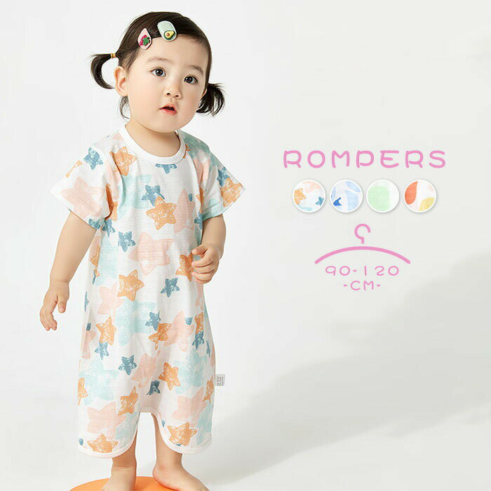 ロンパース キッズ つなぎパジャマ 半袖 パジャマ 前開き 女の子 男の子 カバーオール 総柄 子供・・・