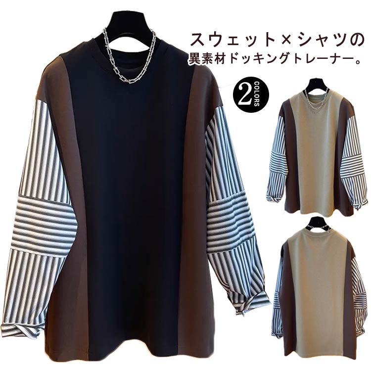 トレーナー レディース トップス 異素材切替 トレーナー 長袖 クルーネック プルオーバー スウェッ・・・