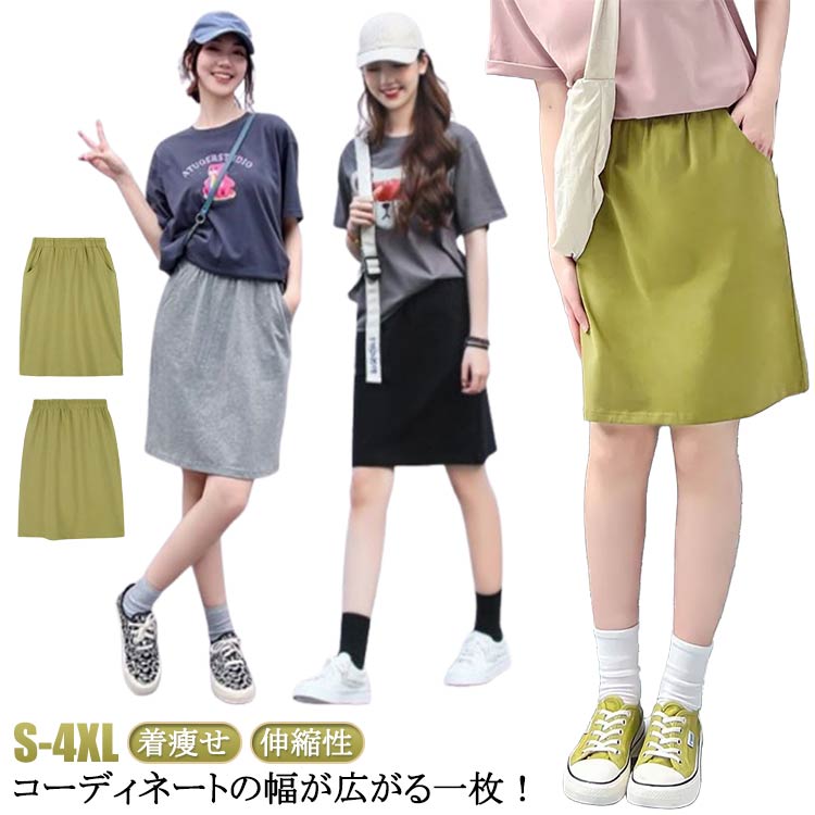 春 夏 ウエストゴム おしゃれ スウェットスカート ミディアムスカート スカート 膝丈 スカート ス・・・