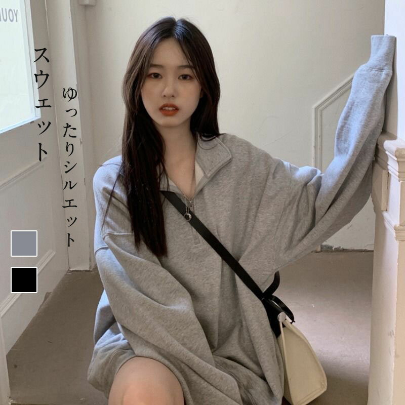 長袖 トップス プルオーバー ゆったり 韓国ファッション スウェット トレーナー クルーネック 春 ・・・