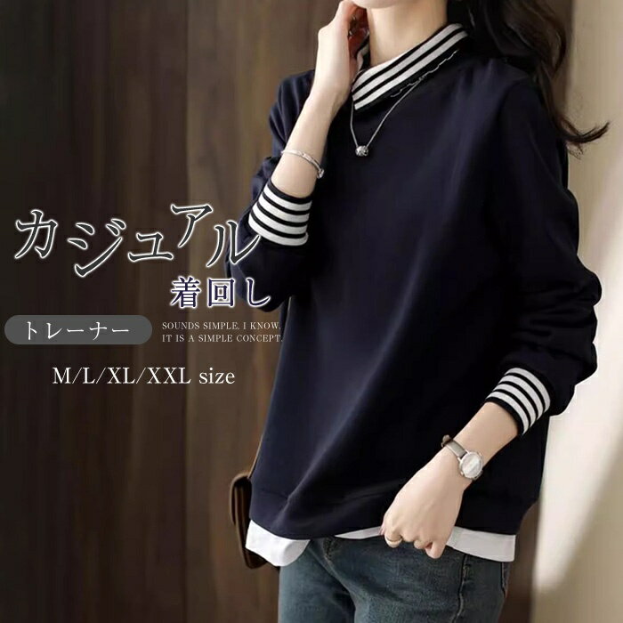 tシャツ トレーナー レディース クルーネック パーカー スウェット レイヤード風 チュニック ゆっ・・・