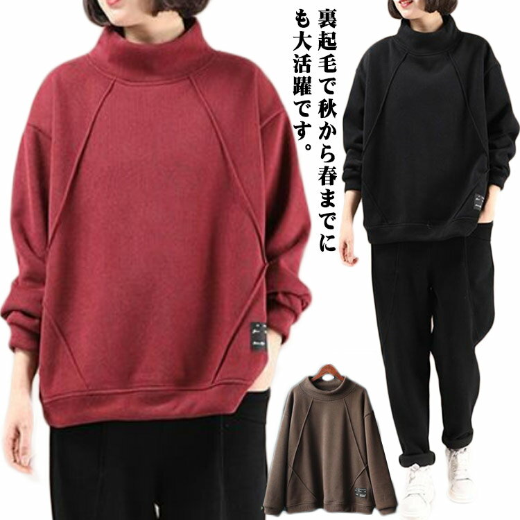 ふわふわ 裏起毛 トレーナー スウェット プルオーバー 長袖 ハイネック あったか ゆったり レディ・・・