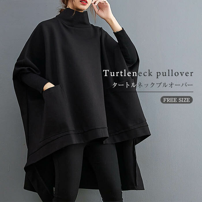 トレーナー レディース ハイネック ドルマン トップス 長袖 秋 春 冬 チュニック 前後差 不規則・・・