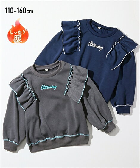 トップス・チュニック トレーナー 子供服 キッズ 裏ベロア配色メロウフリル付き 女の子 冬 トップス・・・