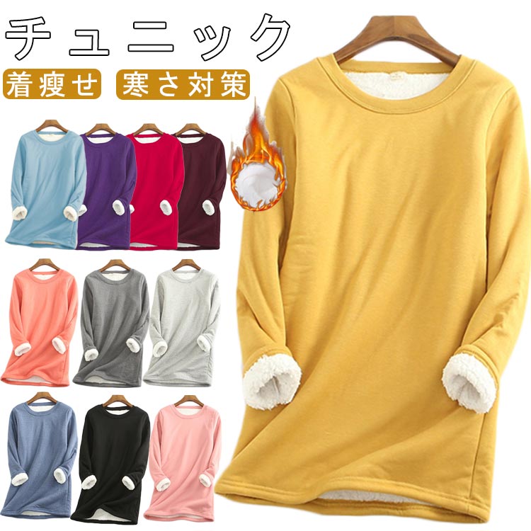 裏起毛 トップス チュニック レディース トレーナー 裏ボア スウェット プルオーバー カットソー ・・・