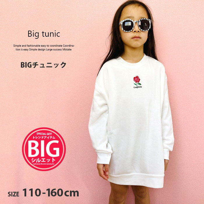 キッズ 子供服 チュニック トップス クルーネック プルオーバー BIG ビッグ 女の子 プリント ・・・