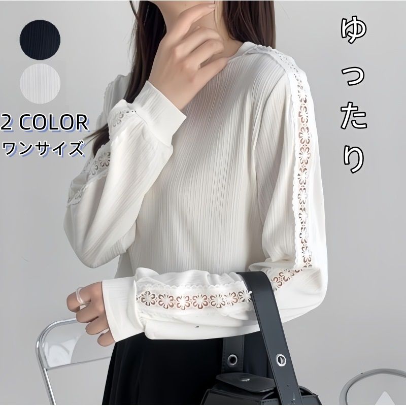 トレーナー レディース ブラウス 長袖 トップス チュニック シャツ 無地 レース tシャツ 春新作