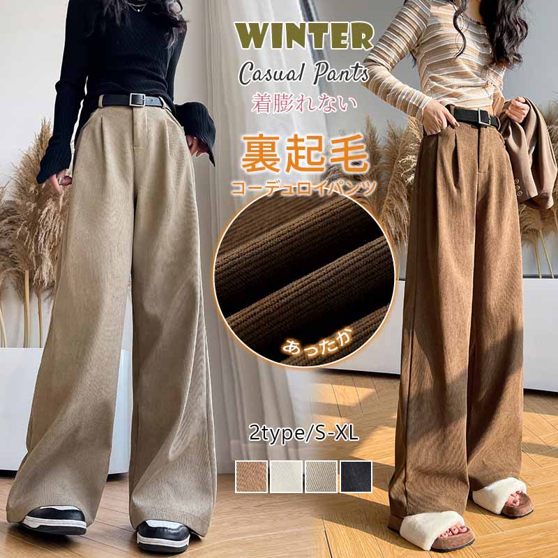 秋冬のワイドパンツ復活! ぬくぬくパンツ イージーワイドパンツ ルーズフィット裏起毛ワイドパンツ レ・・・