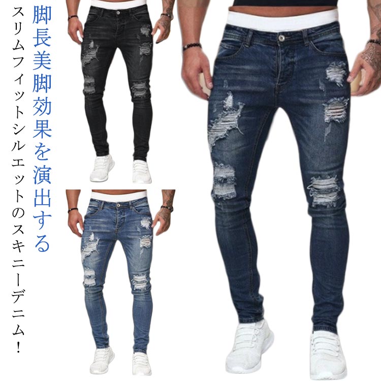 ダメージ ジーンズ メンズ スキニーデニム ストレッチ デニム デニムパンツ ダメージジーンズ ダメ・・・