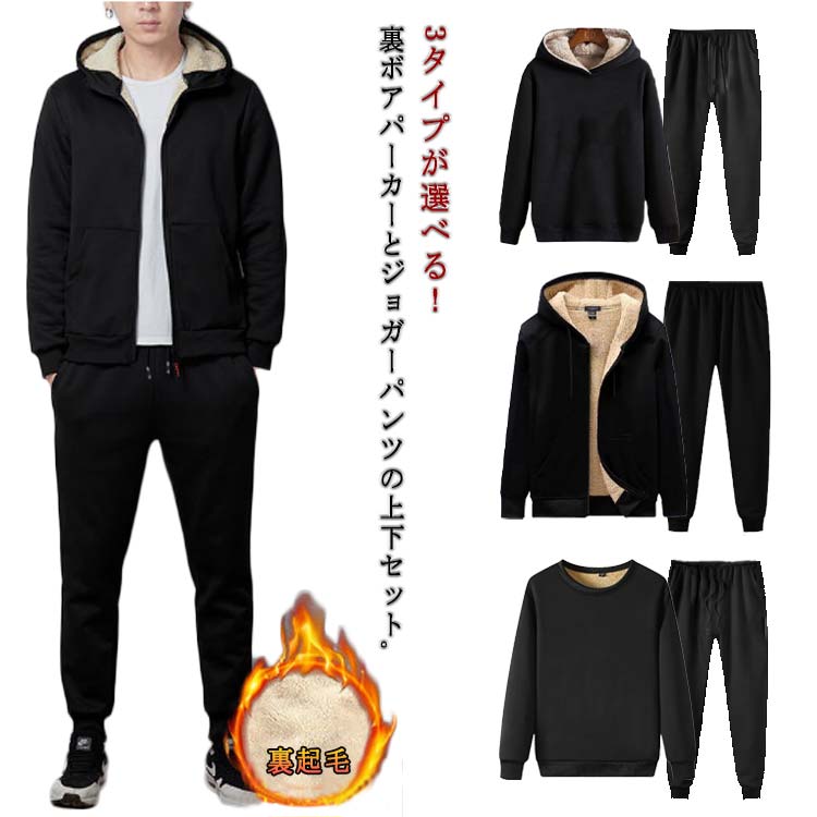 裏起毛パーカー 上下セット スウェットパンツ メンズ 裏ボア 極暖 あったか セットアップ 秋冬 ジ・・・