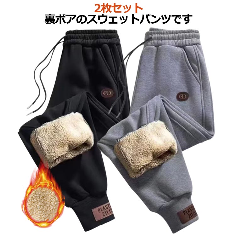 2枚 スウェットパンツ メンズ 裏起毛パンツ ジョガーパンツ 厚手 防寒 防風 あったか 暖かい パ・・・