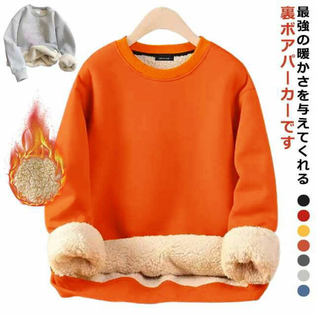 プルオーバー クルーネック スウェット トップス 秋冬服 厚手 防寒 裏起毛 裏ボア 無地 シンプル・・・