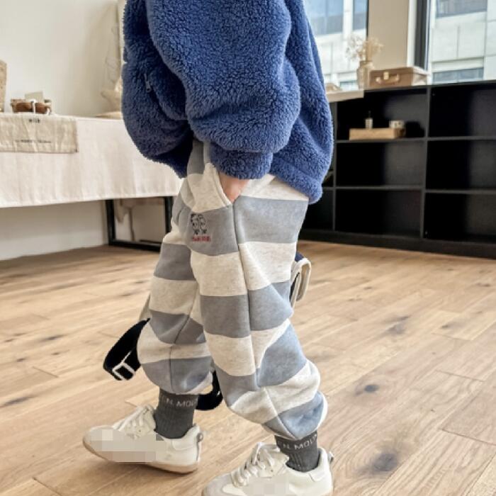ボーダー 裏起毛 パンツ スウェット パンツ グレー 子供服 こども服 こどもふく 韓国子供服 ベビ・・・