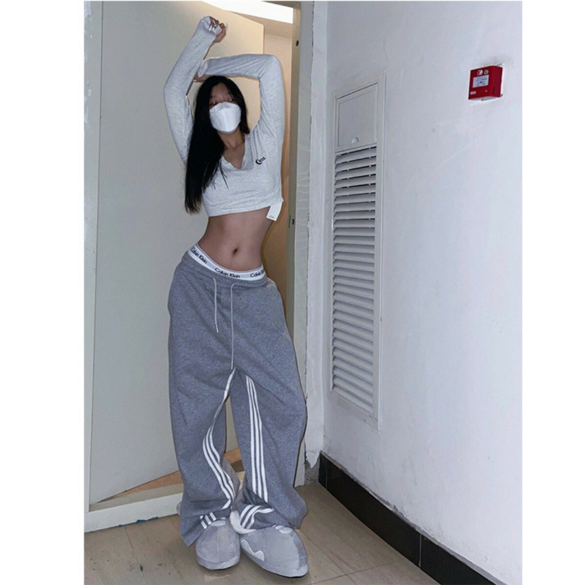 サイドボーダースウェット ヒップホップパンツ グレー スウェット パンツ. ボトムス レディース ア・・・