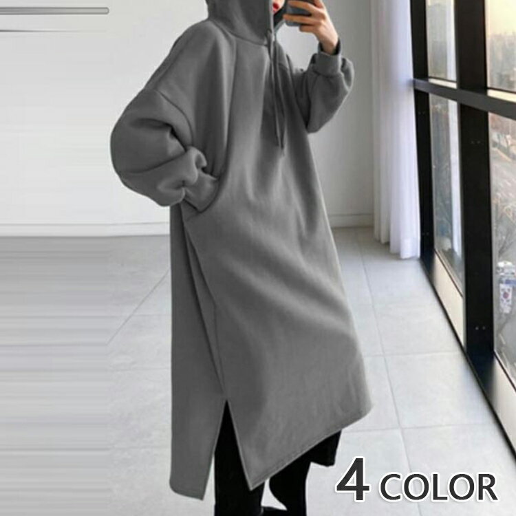 送料無料 パーカーワンピース ロングパーカー 長袖 フード付 レディース 長袖 ロング マキシ丈パー・・・