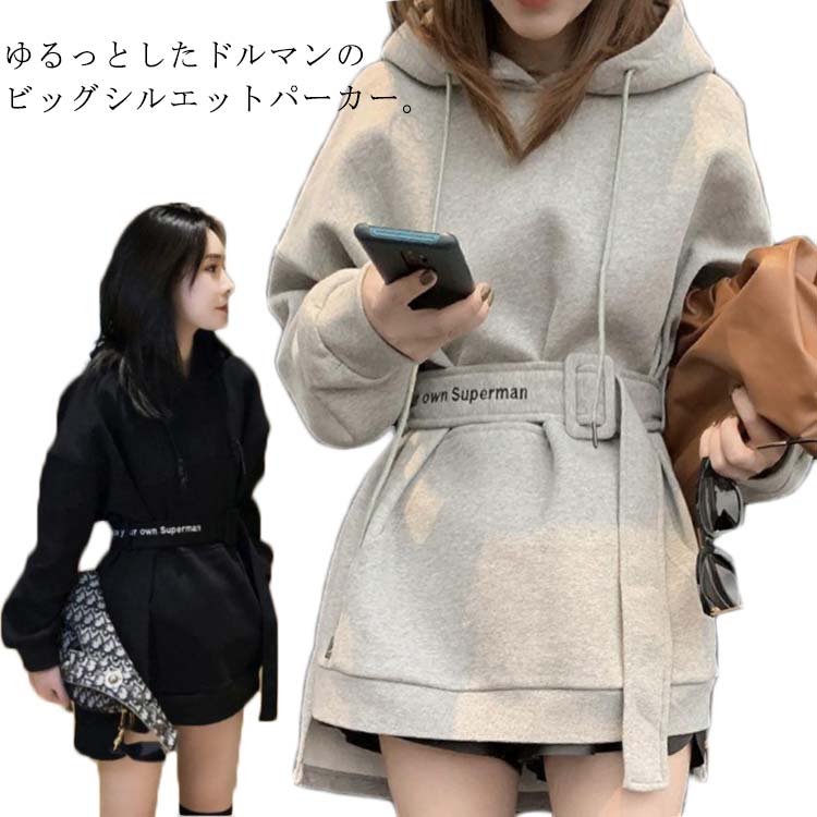ロング パーカー ゆったり ルーズ スウェット カジュアル かわいい あったか 秋 冬 ワンピース ・・・